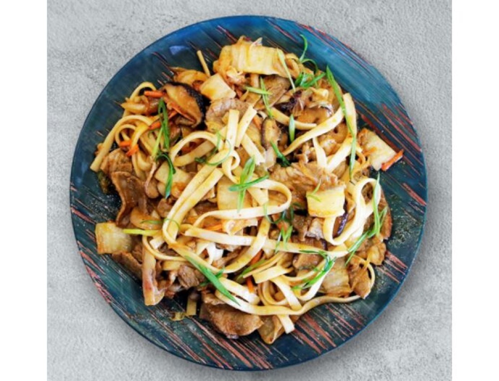 Свинина, кимчи, лук репчатый, морковь, бамбук, шиитаке, лапша "Удон", кунжутное масло, соус "Кимчи".