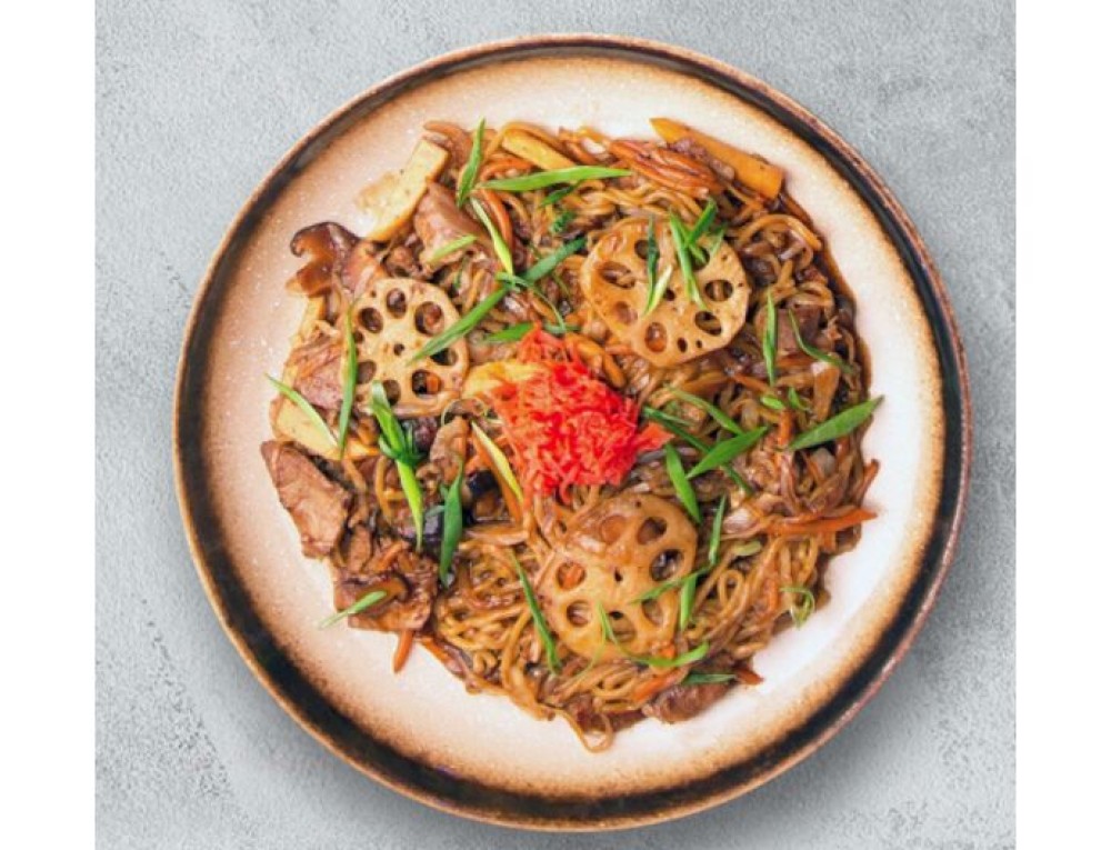 Лапша "Рамен", свинина, овощи, грибы шиитаке, оус "Якинику", имбирь.