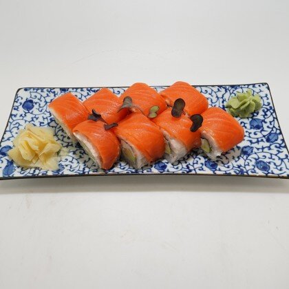 Лосось, гребешок, тунец, рис, нори, икра летучей рыбы