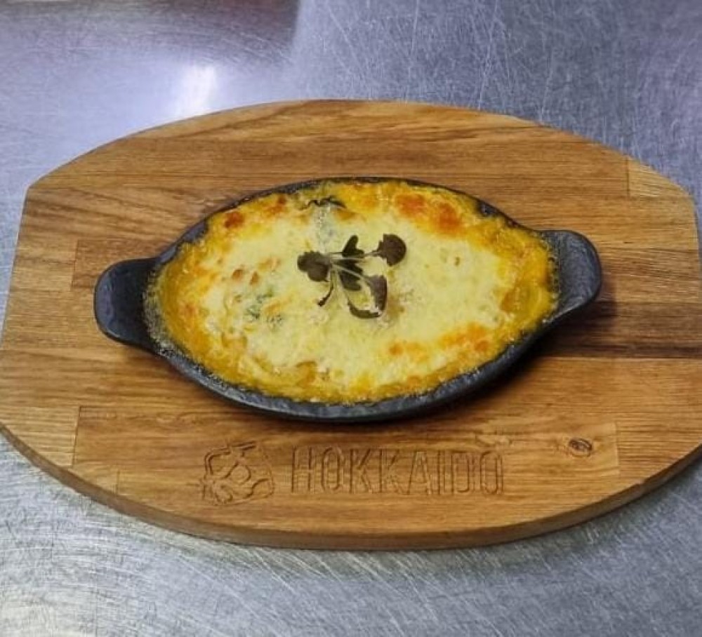 Тыква, лук, морковь, сливки, гребешок, краб, креветка, сыр моцарелла