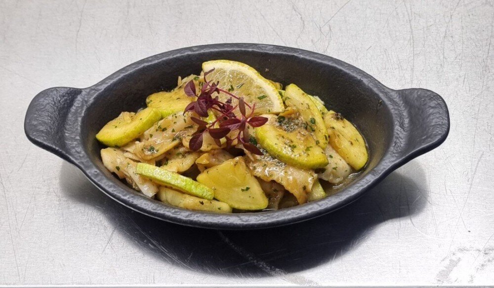 Трубач, кабачок, сливочное масло, чеснок, соя, петрушка